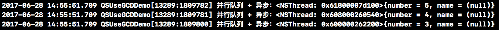 NSLog(@"并发队列 + 异步:%@",[NSThread currentThread]);