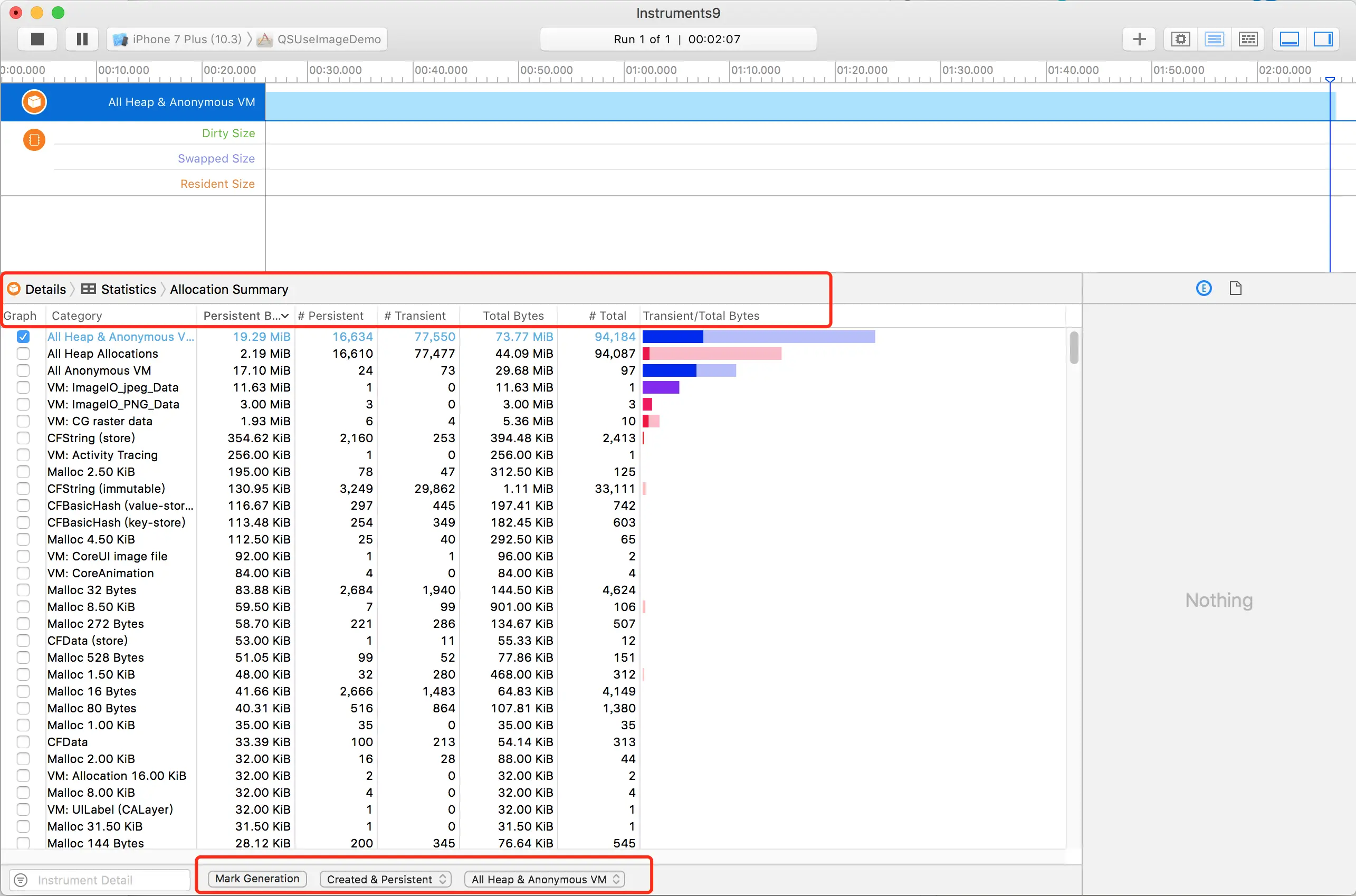 使用Instruments Allocations排查内存释放不及时的问题