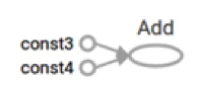使用TensorFlow开发工具所提供的可视化工具TensorBoard, 可以看到这个程序的流程图是如下,两个常数节点3和4被加起来: