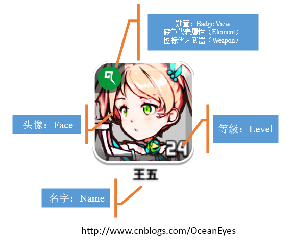 }所以对于FaceBoxViewModel而言,它为FaceBoxView服务。FaceBoxView需要什么数据,它就提供什么数据。显然它需要提供Name,Level,Face以及Badge组件的DataModel: