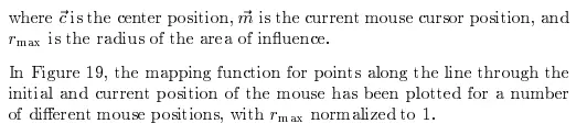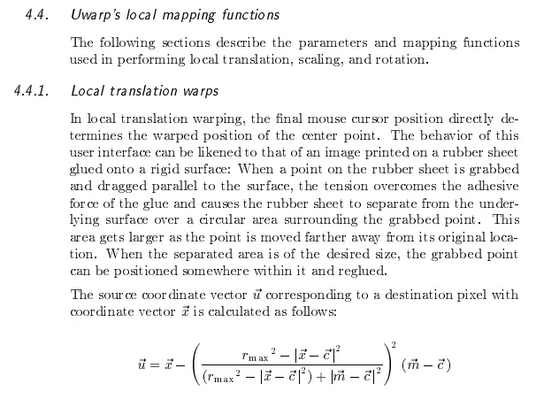 小弟这里用到的平滑过渡可交互的瘦脸算法是 Andreas Gustafsson 的 Interactive Image Warping 文献里提及的Uwarp's local mapping functions。截个图大家看看: