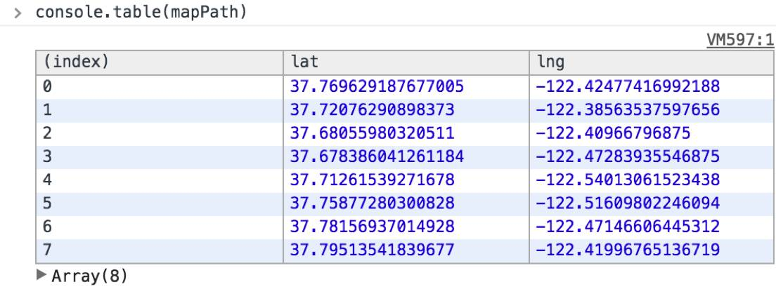 为了查看每个数组的元素,必须得一个个展开,就显得有点麻烦了,其实可以用console.table: