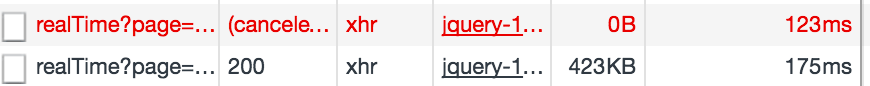 当上一次请求还没完成又要发一个新的请求的时候,代码里面会把上一次请求abort掉,所以会看到上一个变红了: