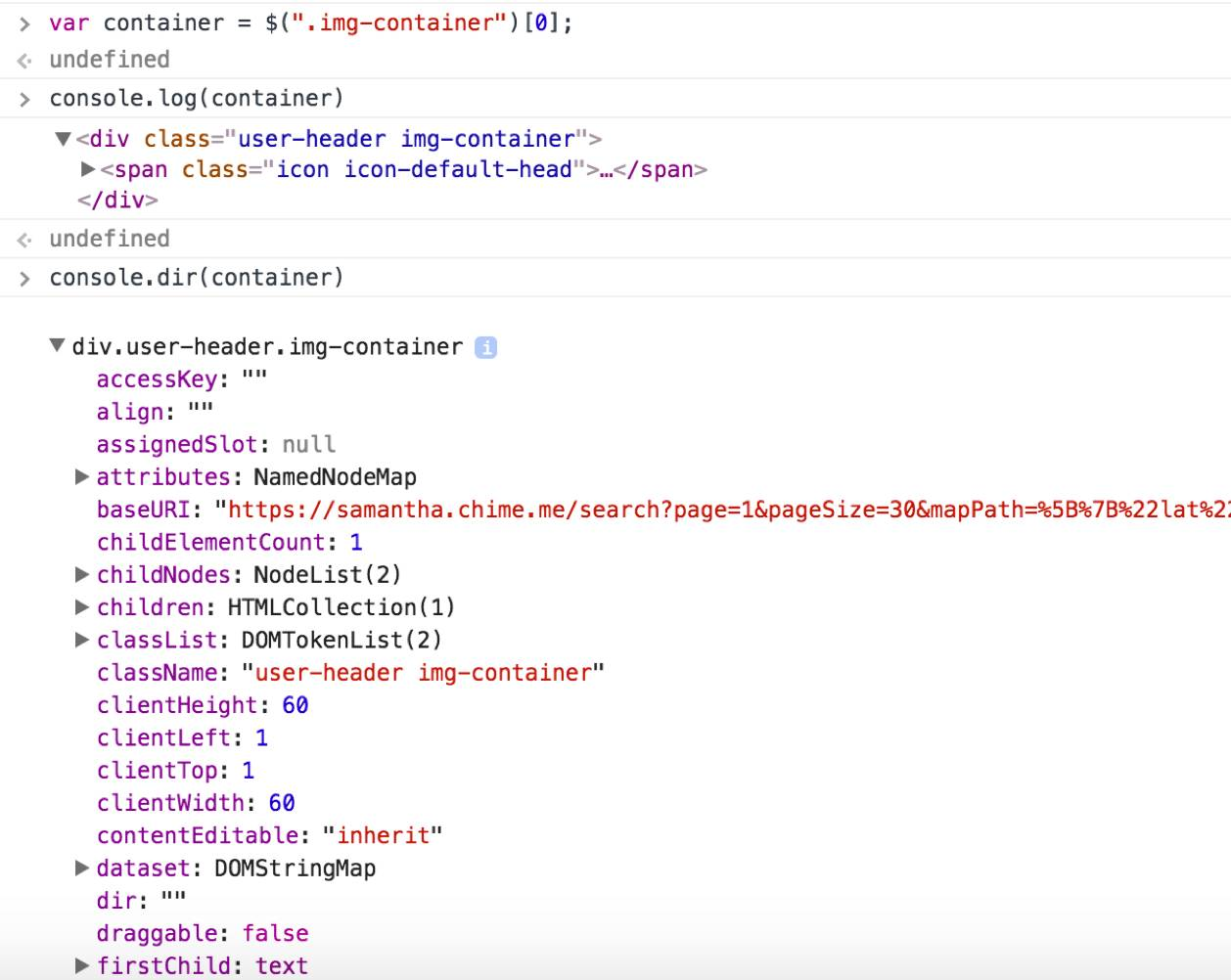 console.log是侧重于字符串化的打印,而console.dir能递归打印对象的所有属性,如下打印一个dom结点: