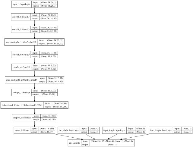 验证识别中的主要流程包括:去噪点、去色、切片、模板对比、输出5个环节,因此在基于深度学习的OCR识别中,美团酒旅团队选择了CNN(Convolutional Neural Network)+LSTM(Long Short-Term Memory)+CTC(Connectionist temporal classification)的组合算法方案: