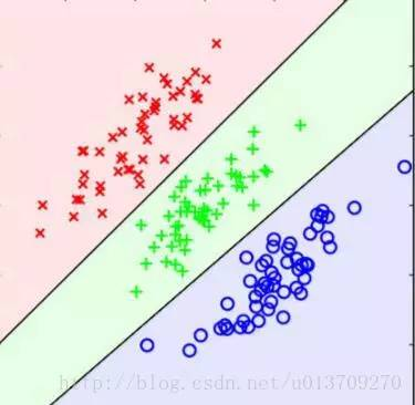 有监督学习:有监督学习是指进行训练的数据包含两部分信息:特征向量 + 类别标签。也就是说,他们在训练的时候每一个数据向量所属的类别是事先知道的。在设计学习算法的时候,学习调整参数的过程会根据类标进行调整,类似于学习的过程中被监督了一样,而不是漫无目标地去学习,故此得名。下图中,不同颜色的点代表不同的类别,直线就是我们学习出来的分界面(也叫学习器,分类器)。