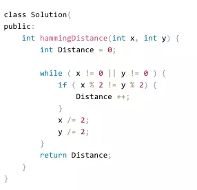 b.如果仔细思考可以发现,逐位比较两个数其实不需要开数组存放他们的二进制的形式,在一个循环内对两个数同时逐位比较即可,时间复杂度为O( log( max( x, y) ) )。下面给出这种解法的参考程序。
