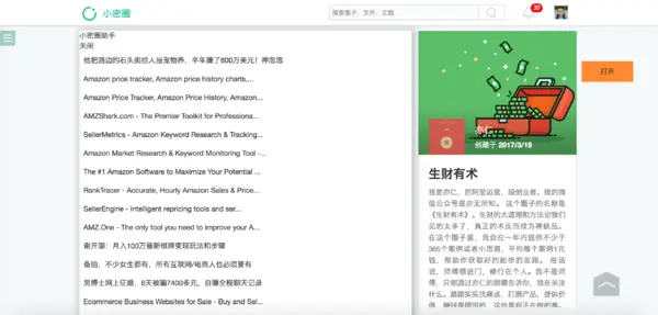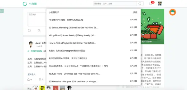 想法的产生是结果,并不是过程。什么意思?就是说,你冒出来的想法,其实在之前的生活、工作、学习的过程中就已经注定了。小密圈助手的想法也是这样。之前因为好奇,加入了“生财有术”小密圈,小密圈跟微信群很不同,小密圈是收费圈子,目的是让圈主更好的经营自己的粉丝,并将知识沉淀下来。因为圈子了每天会更新很多的知识,有人分享案例、书、好的链接等等。我过些天会爬楼刷下里面的内容,就这样过了几个月。
