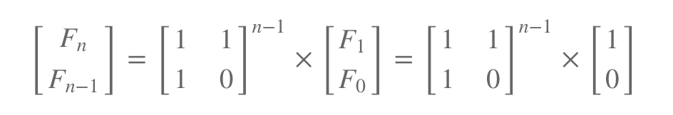 我们先把斐波那契数列中相邻的两项:F(n)和F(n - 1)写成一个2x1的矩阵,然后对其进行变形: