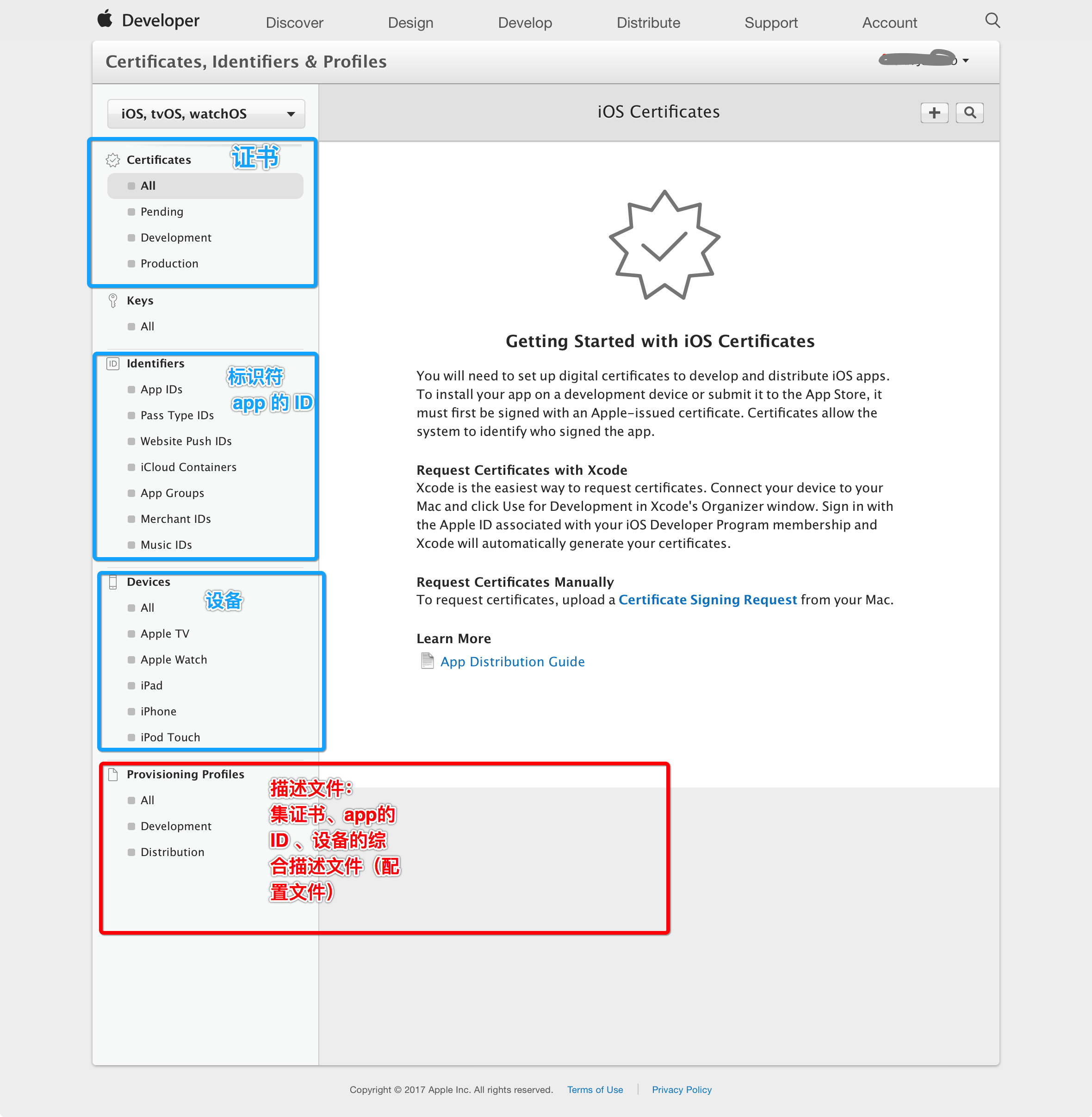 开发者账户申请完成之后,接下来就是申请证书开始调试和发布APP啦