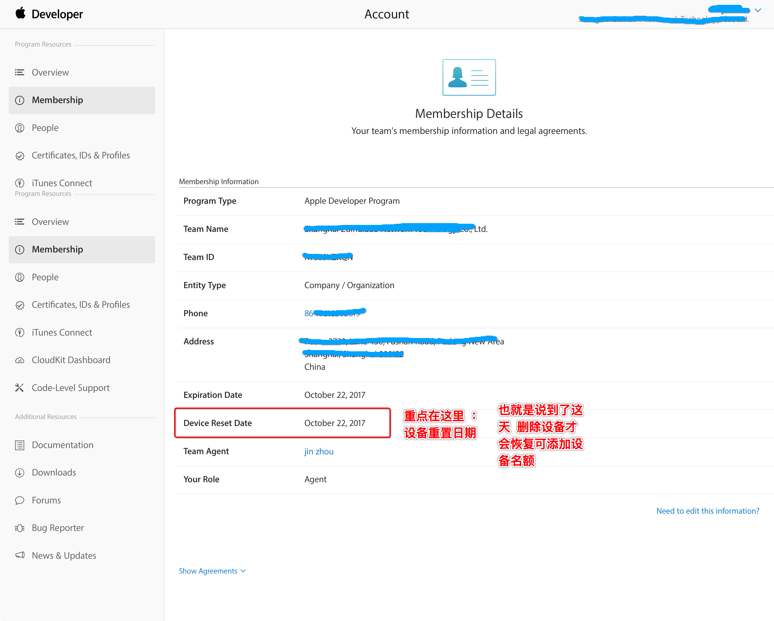 注:删除设备并不会立即恢复设备名额,而是要等到当前开发者账户到期后并且成功续费那一刻开始,删除设备才会释放名额,直到添加第一个设备止;