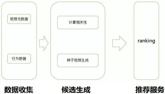 上述计算相关性的公式,只是一个简单抽象,文章提到实际业务中还考虑了很多因素,比如播放时间戳、播放序列、video metadata 等。有了视频之间的相关性,就可以将每个视频作为节点,视频之间的相关性rij作为边的权值构建一个有向的 video graph,接下来根据这个图为每个用户 u 来产生推荐候选集合,然后将推荐集合传入进入排序层生成推荐列表,大概逻辑如下: