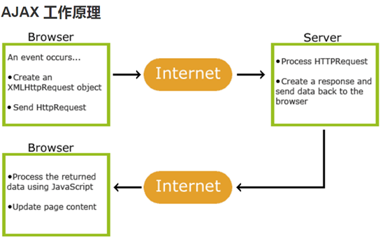 功能:向服务器异步发送和接收数据,然后用JavaScript解析。