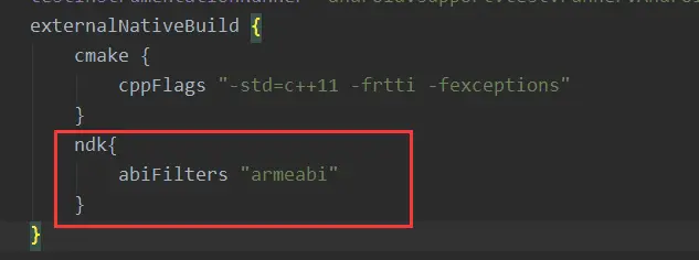 我这里只编译支持了armeabi,cpu架构的平台,需要在app,module的build.gradle中做一些修改: