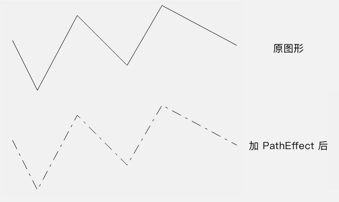 这个方法比 DashPathEffect 多一个前缀 Path ,所以顾名思义,它是使用一个 Path 来绘制「虚线」。具体看图吧: