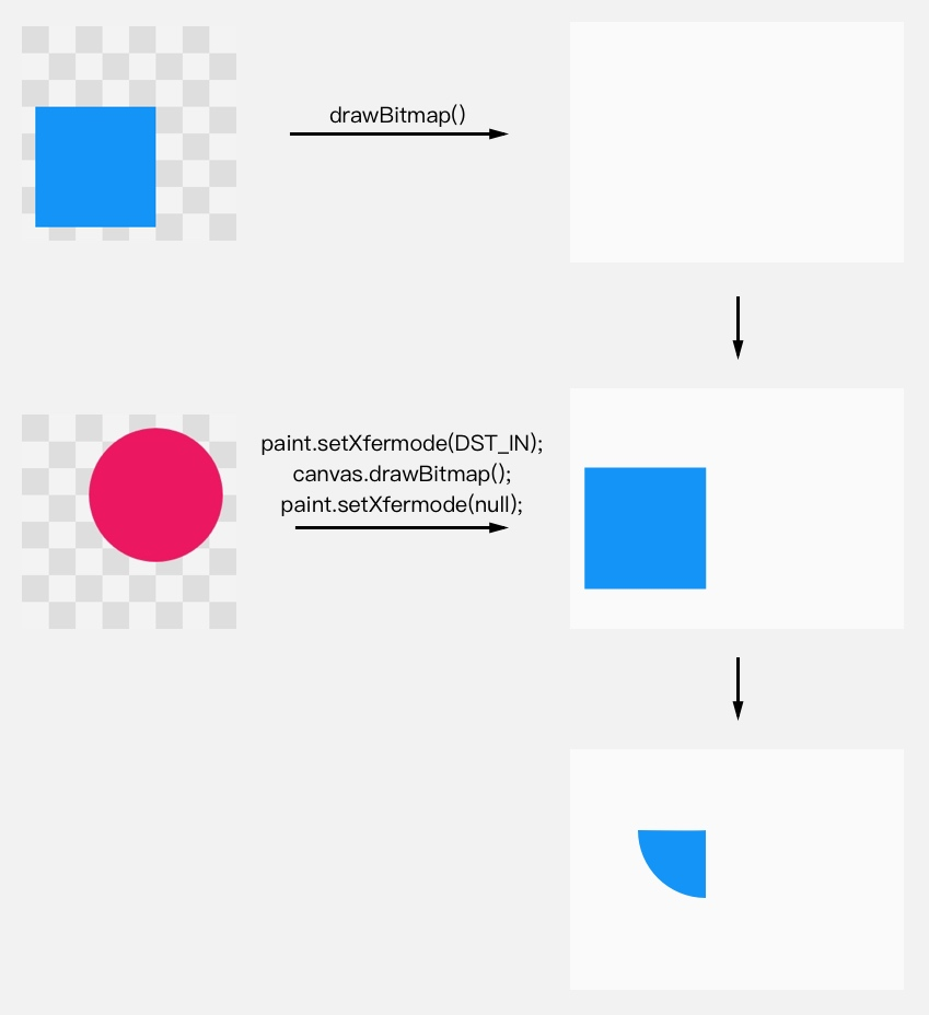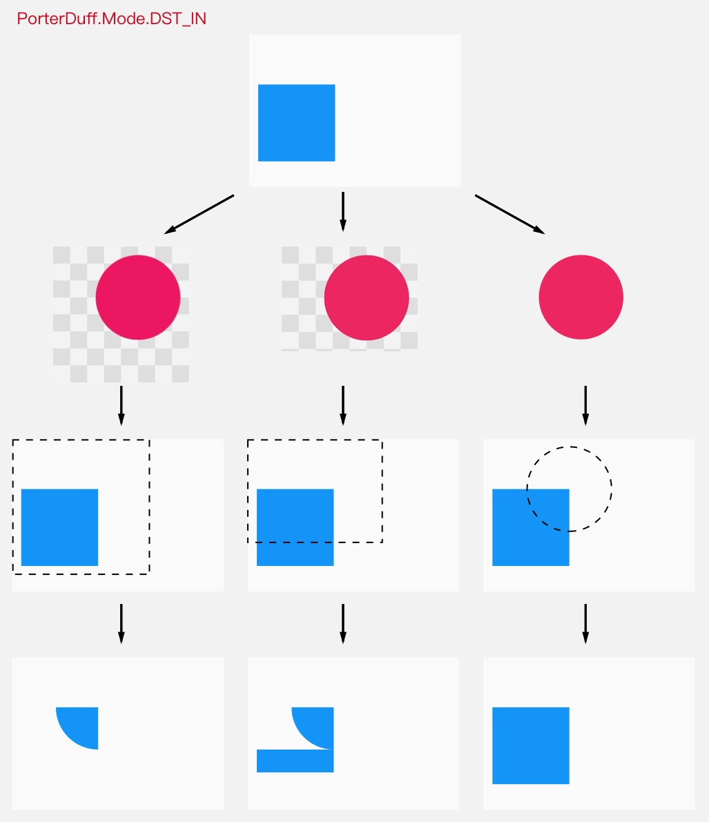 mode改为PorterDuff.Mode.DST_IN,就会变成蒙版抠图效果:这下明白了吧?
