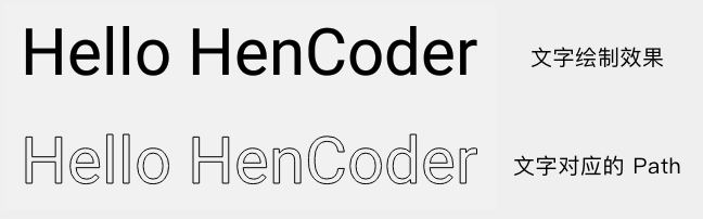 这里就回答第二个问题:「文字的 Path」。文字的绘制,虽然是使用 Canvas.drawText() 方法,但其实在下层,文字信息全是被转化成图形,对图形进行绘制的。 getTextPath() 方法,获取的就是目标文字所对应的 Path 。这个就是所谓「文字的 Path」。