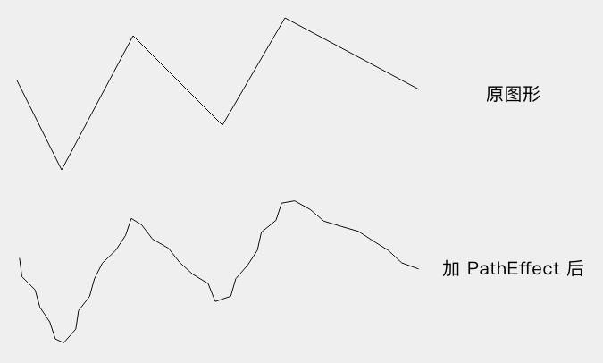 这也是一个组合效果类的 PathEffect 。不过它是先对目标 Path 使用一个 PathEffect,然后再对这个改变后的 Path 使用另一个 PathEffect。