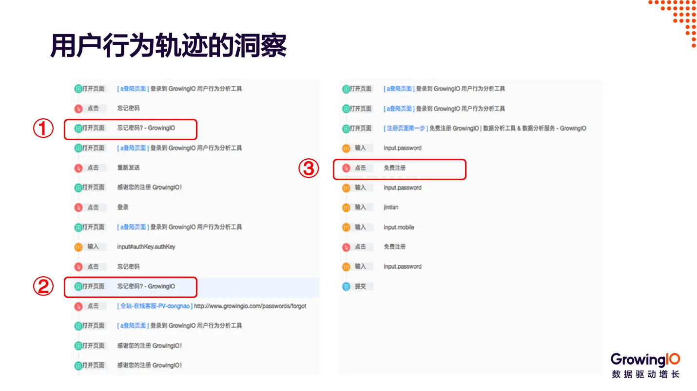我们之前遇到过一个客户,有一段时间网站的注册转化率有了上升;虽然并没有查出原因在哪,但是产品经理还是很高兴。过了一段时间,分析师通过用户行为轨迹细查发现,【找回密码】功能出 BUG 了;很多老用户忘记密码无法找回,只好重新注册了一个账号。