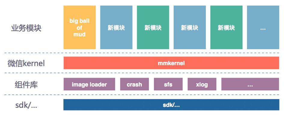 “设计系统的组织,其产生的设计和架构等价于组织间的沟通结构”。对于微信几年间走过的路程,时至今日团队内的沟通形式还可以做到较多的直接沟通。这些情况决定了微信如今的技术选择。所以在方案选择上我们就更愿意寻求相对简单合适的方式解决问题——用纯粹的模块化保持后续架构的灵活性和健壮性,重新强调依赖、强调应用状态和生命周期、强化代码的边界。