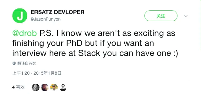 如果你对这位从生物信息学博士变身Stack Overflow数据科学家的David Robinson感兴趣,可在AI科技大本营(rgznai100)微信公众号后台回复“数据”,即可获得David Robinson的R语言文本挖掘《Text Mining with R》免费电子书。