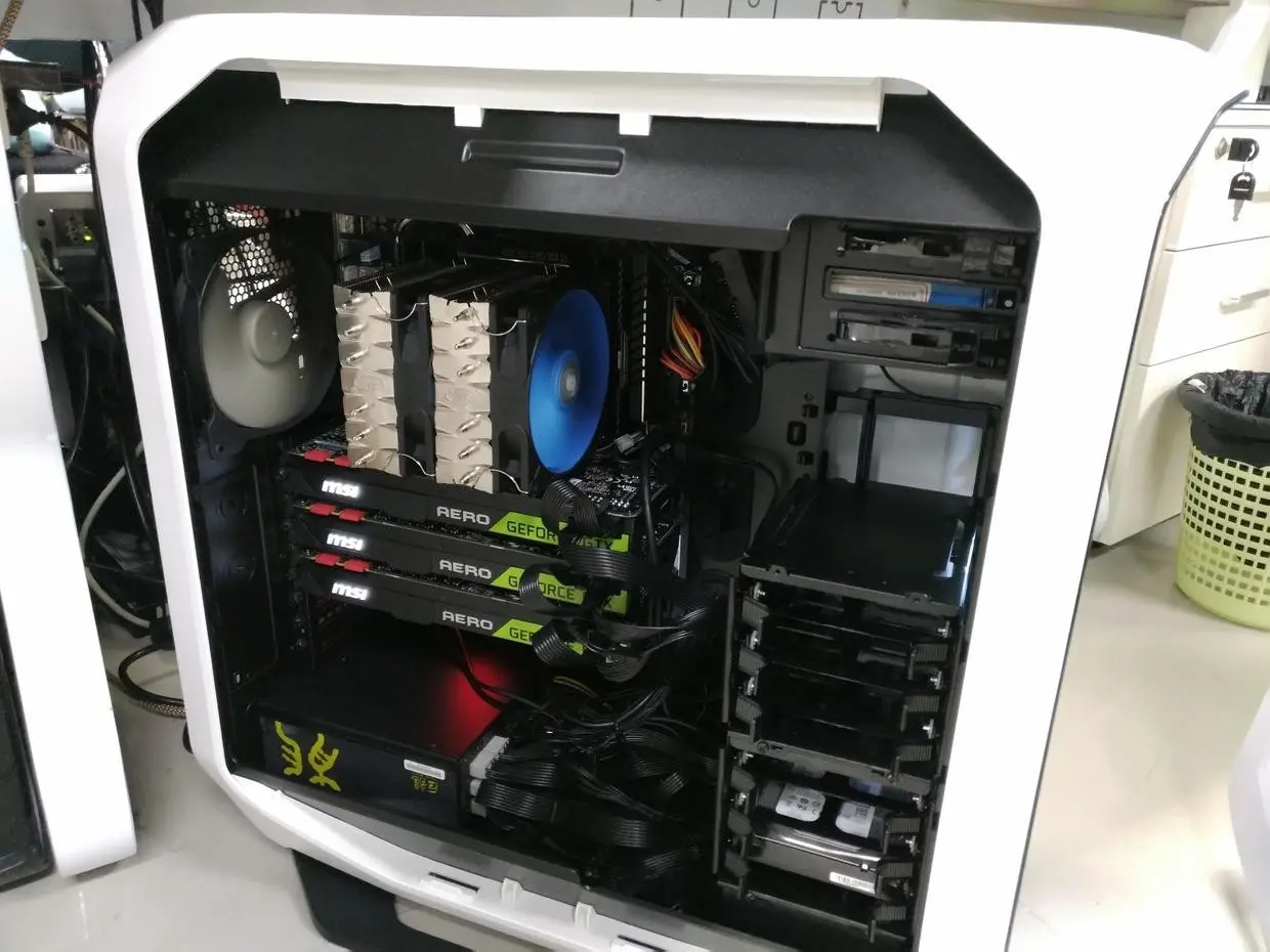 机械硬盘来个1到2TB左右的就好,一般一线大厂差别都不大,选了希捷2TB。散热器选了九州风神大霜塔,能压住I7-6850K,体型还挺大的,不过对我的主板来说尺寸刚刚好,不会挡住显卡。电源的功率一定要够,粗略算了一下3张显卡每张功率峰值250w,CPU150w左右,加起来不会超过1000w,所以选了个1250w的电源(另外供货商也找不到现货更大的电源了)。内存最低也要64GB,所以选了4个2400MHz/16GB的海盗船复仇者,注意主板和CPU支持你的内存频率就最好,不然会被降频使用。