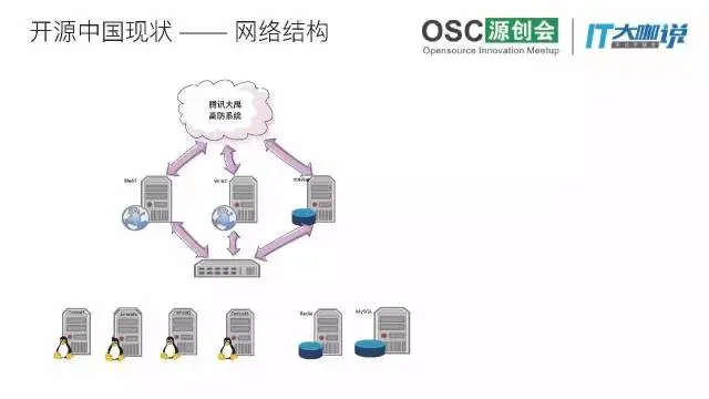 开源中国成立公司是在2011年,网站在2008年就上线了。这个网站撑了有两三年的时间,后来数据长得很快,就开始出现问题了。第一个就是单节点无法应付高并发的访问。还有一个最可怕的问题就是因为程序更新很频繁,Java每次更新的时候都要重启。一旦重启后,整个Ehcache缓存里的数据都被清掉。所以说重启然后大量访问进来的话,数据库基本上很快就会崩掉了。
