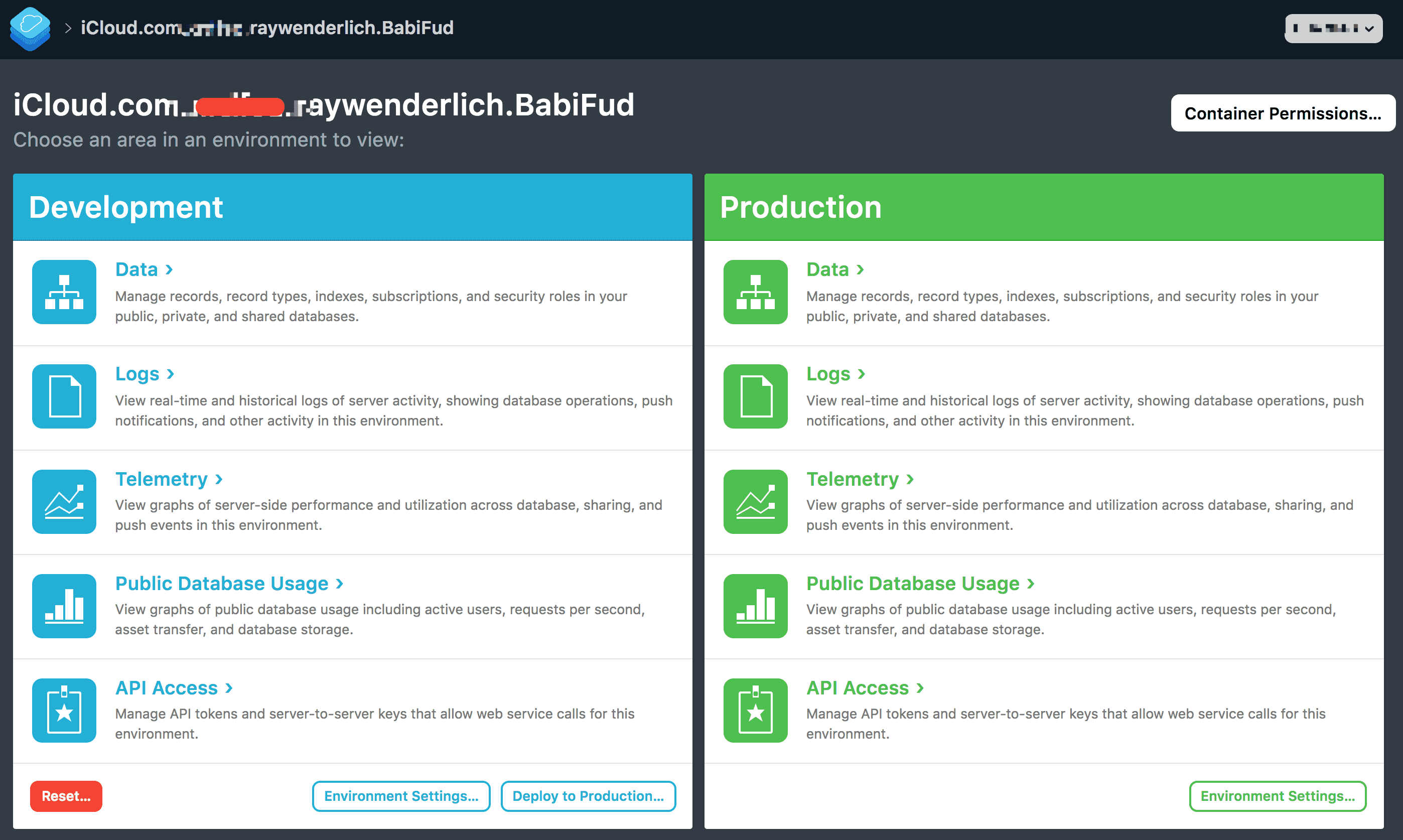 新版CloudKit Dashboard包含:Data,Logs,Telemetry,Public Database Usage,Api Access。
