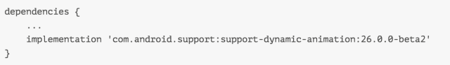 Google I/O ‘17推出了许多新的特性,在动画这一块又有新的API供开发者使用,具体视频请见Android Animations Spring to Life (Google I/O ‘17)(https://www.youtube.com/watch?v=BNcODK-Ju0g),主要介绍了Physics-based Animations,在动画API中引入了DynamicAnimation,并介绍了它的两个子类FlingAnimation和SpringAnimation的使用,开发者可以使用新的API创建更加动态化的动画。