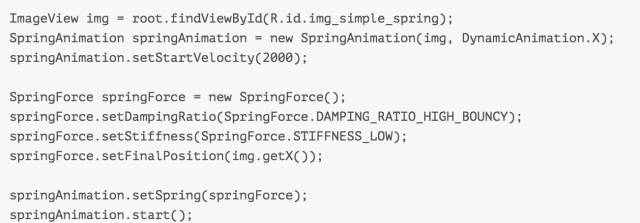 和FlingAnimation一样,创建完SpringAnimation后我们需要设置初速度,接着创建了一个