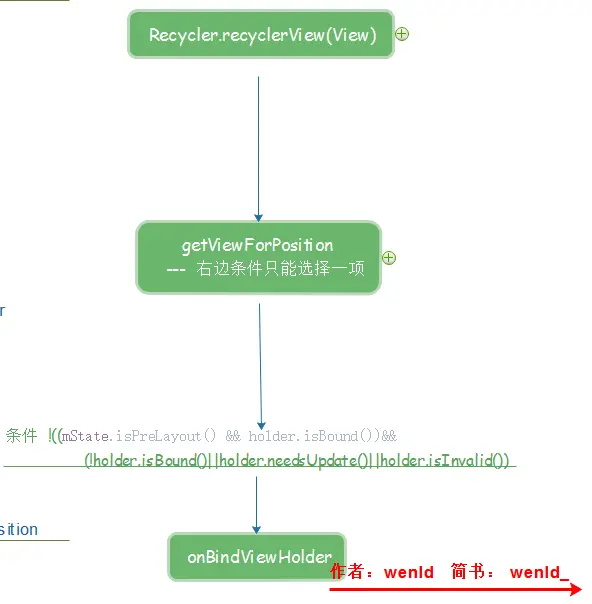 viewHolder如果是从以下条件下拿到的,才会去执行onBindVIewHolder`onCreateVIewHolder()`拿到 或者是从 `RecyclerViewPool`中获取到的 或者是从 `recycler.mCacheVIews` 中获取到 且 `viewHolde`r的 `flags` 为 `NeedUpdates||InValid` 情况下