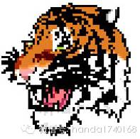 对于仅仅有黑白两色的字符,可以用0和1的序列就可以完整的表达,但是如果是彩色的图案呢?其实方法也是非常类似的,我们可以看看下面这个例子,这是一个如下图1-15所示的老虎头。