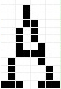 最基本的就是要找到字符A的图形数据,也就是要知道如何用一系列的黑色像素点,在白色的背景上,拼出A的形状。我们可以放大一下,看看屏幕上的A实际上是怎么样的一个图形,如下图1-14 所示。