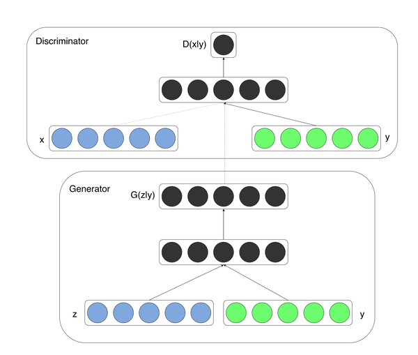 就是在G网络的输入在z的基础上连接一个输入y,然后在D网络的输入在x的基础上也连接一个y: