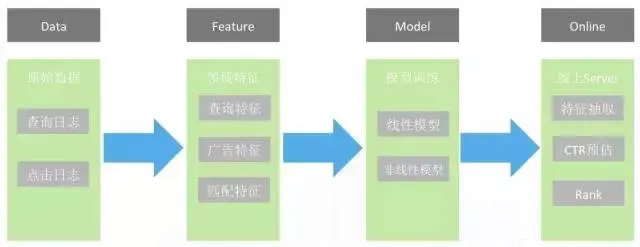 数据模块:首先要有一个日志收集模块,会收集到最原始的数据,需要进行去噪,是因为原始数据也会有一些噪声点,比如同一个用户同一个查询词连续搜索两次,第一次没点广告,但第二次点了,第一次没点到底是因为广告出的不好,还是因为用户当时不在状态,根本没有看到广告呢。