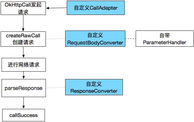 对于CallAdapter/RequestBodyConverter/ResponseConvert可以获取到这3部分信息.然后做相应操作,过程是非常灵活.