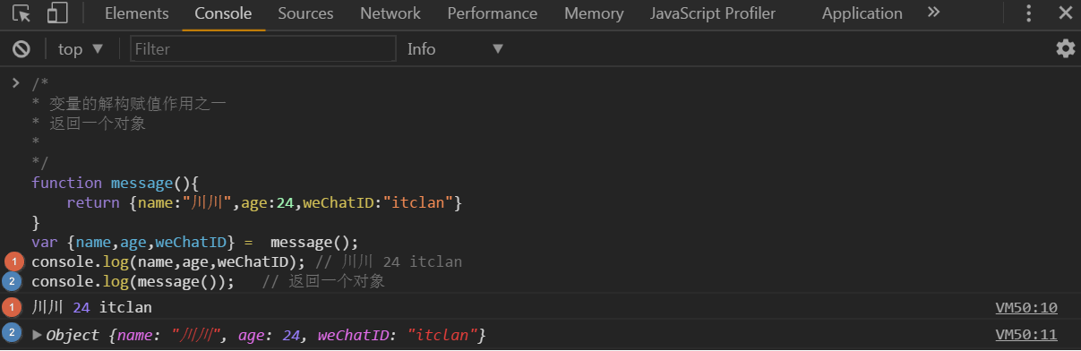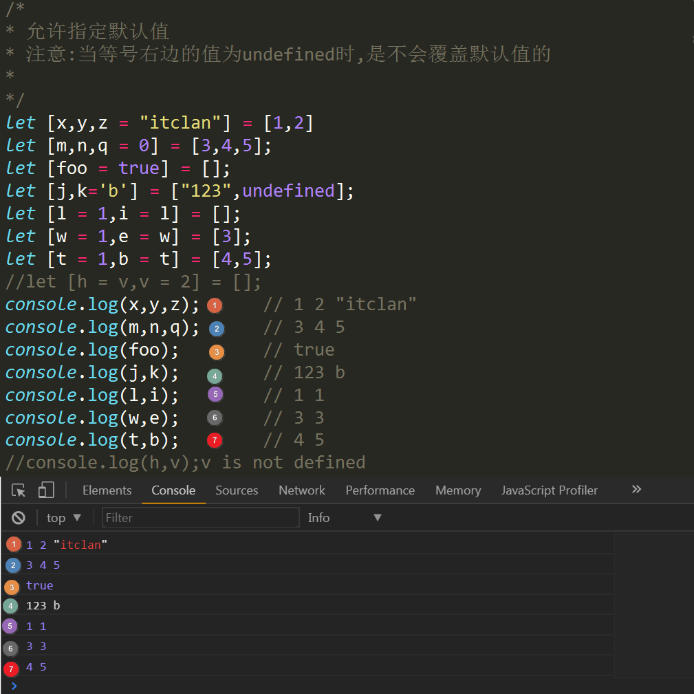 如下代码实例所示:解构赋值可以方便的将一组参数与变量名对应起来