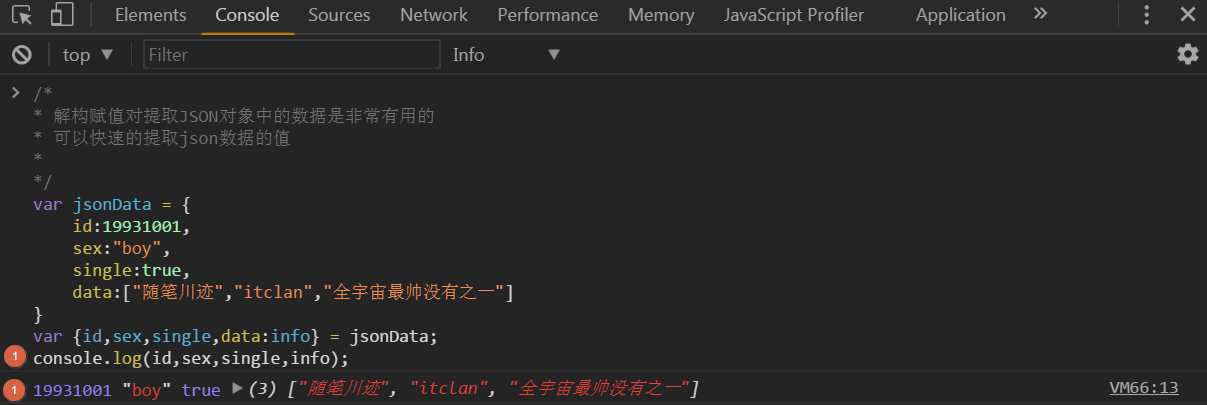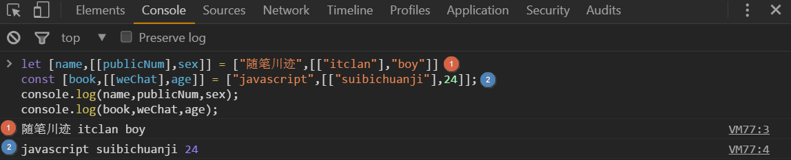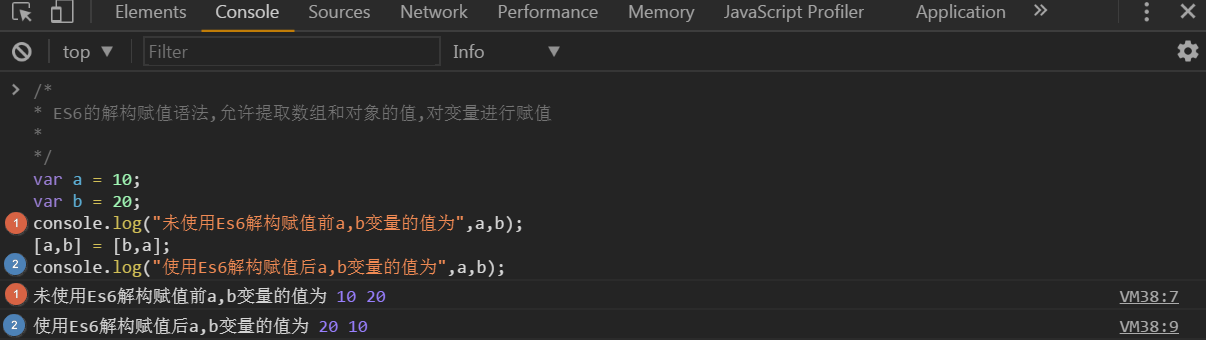 方法六:使用Es6解构赋值的方法,允许我们提取数组和对象的值,对变量进行赋值