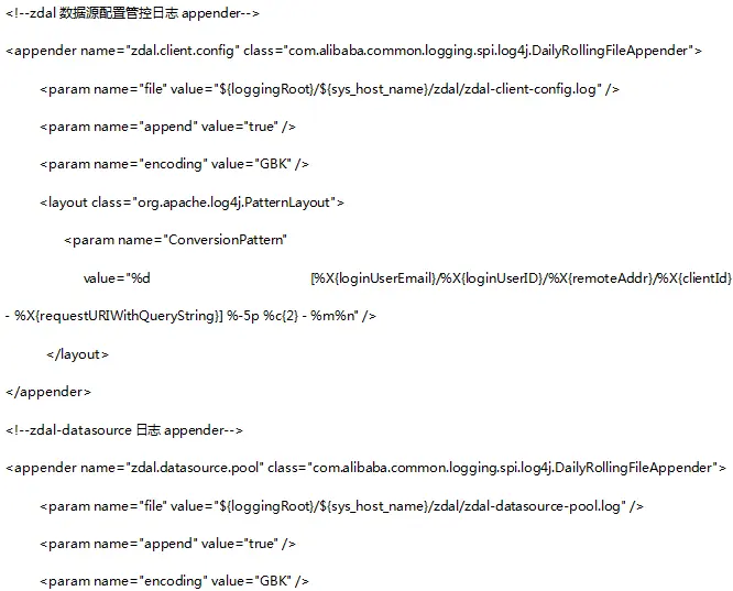 1.zdal-client-config.log:初始化的日志信息,主要打印appName,appDsName,dbmode,configPath,分库分表规则,groupRule,failoverRule,动态failover,markdown,markup等动态推送的日志信息。