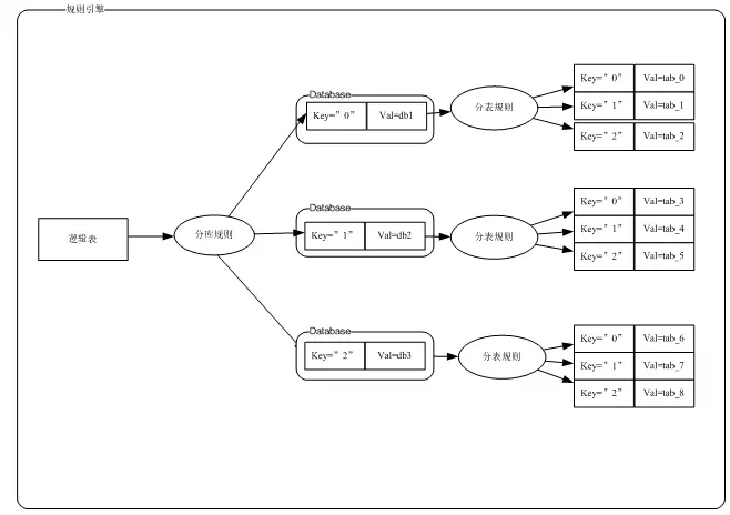 我们假设分库规则是 user_id % 9 / 3 分表规则是user_id % 9 % 3