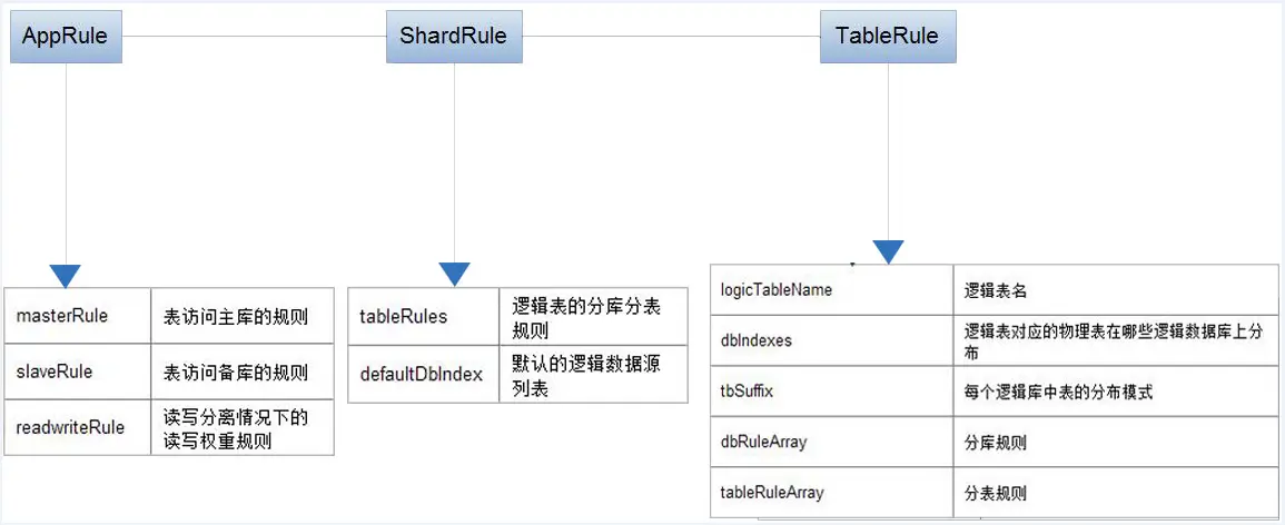 分库分表规则AppRule的3层配置结构如下图: