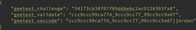 分别取 c,d,e 跟 challenge 做 t 加密 (t(c,challenge), t(d, challenge), t(e,challenge)) 并用(_)拼接即为 geetest_validate, '9ccccc997288_999c9ccaa83_999cc9c9999990d'