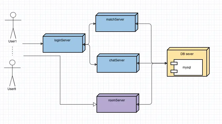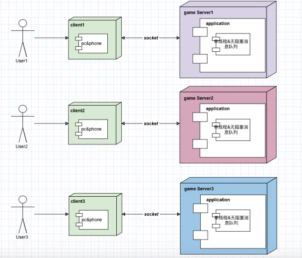 玩家先登录“大厅服务器”,然后选择组队游戏的功能,服务器会通知参与的所有游戏客户端,新开一条连接到房间服务器上,这样所有参与的用户就能在房间服务器里进行游戏交互了。