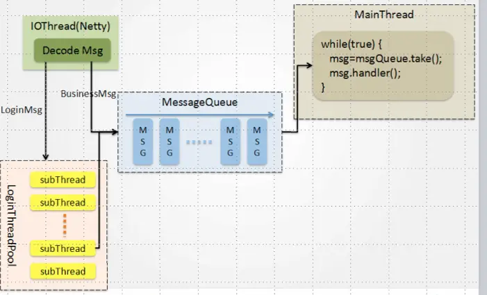 异步-多线程,基于每个场景(或者房间),分配一个线程。每个场景的玩家同属于一个线程。游戏的场景是固定的,不会很多,如此线程的数量可以保证不会不断增大。每个场景线程,同样采用tick轮询的方式,来定时更新该场景内的(对象状态,刷新地图,刷新NPC)数据状态。玩家如果跨场景的话,就采用投递和通知的方式,告知两个场景线程,以此更新两个场景的玩家数据。
