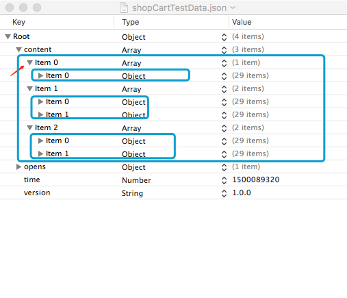 由图可以看到,所有的数据是包含在一个大的数组内的,大的数组内又包含根据不同的商家区分的不同一级数组,每级数组里对应的是包含各个商品的数据。为了方便做处理,对一个商品数据加入