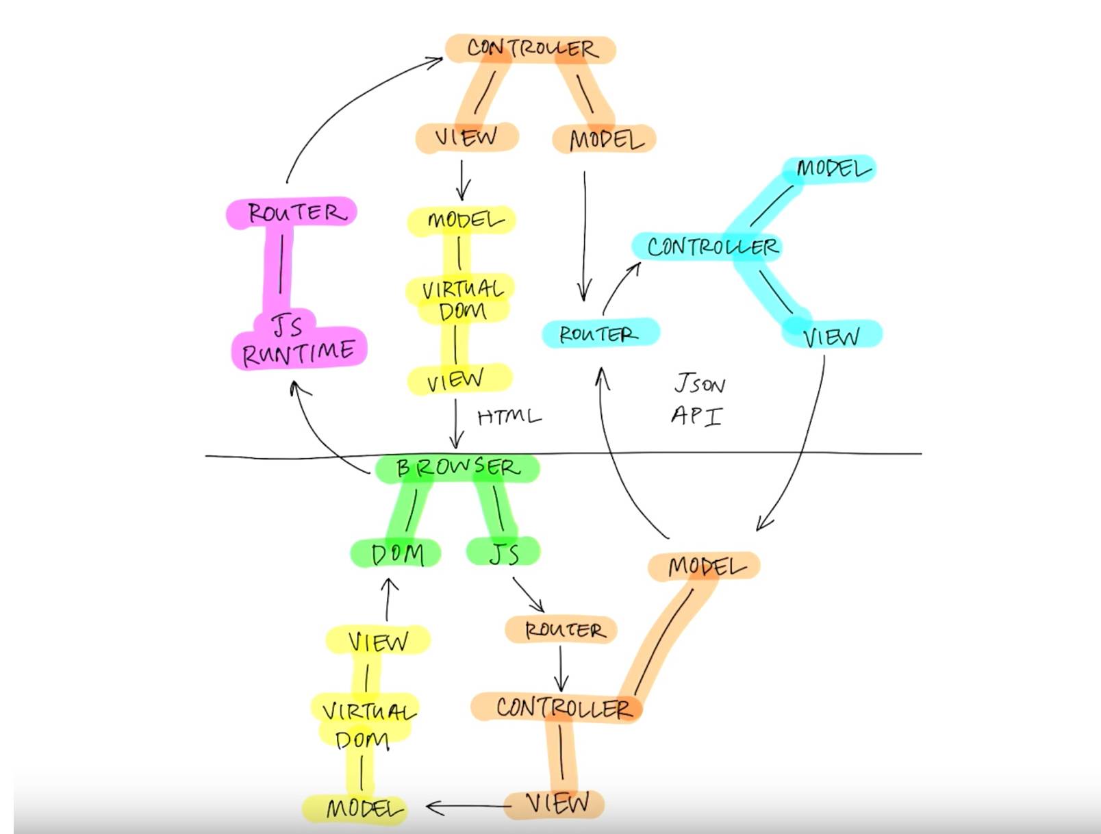 后端依然是 MVC,但是前端加了三部分: