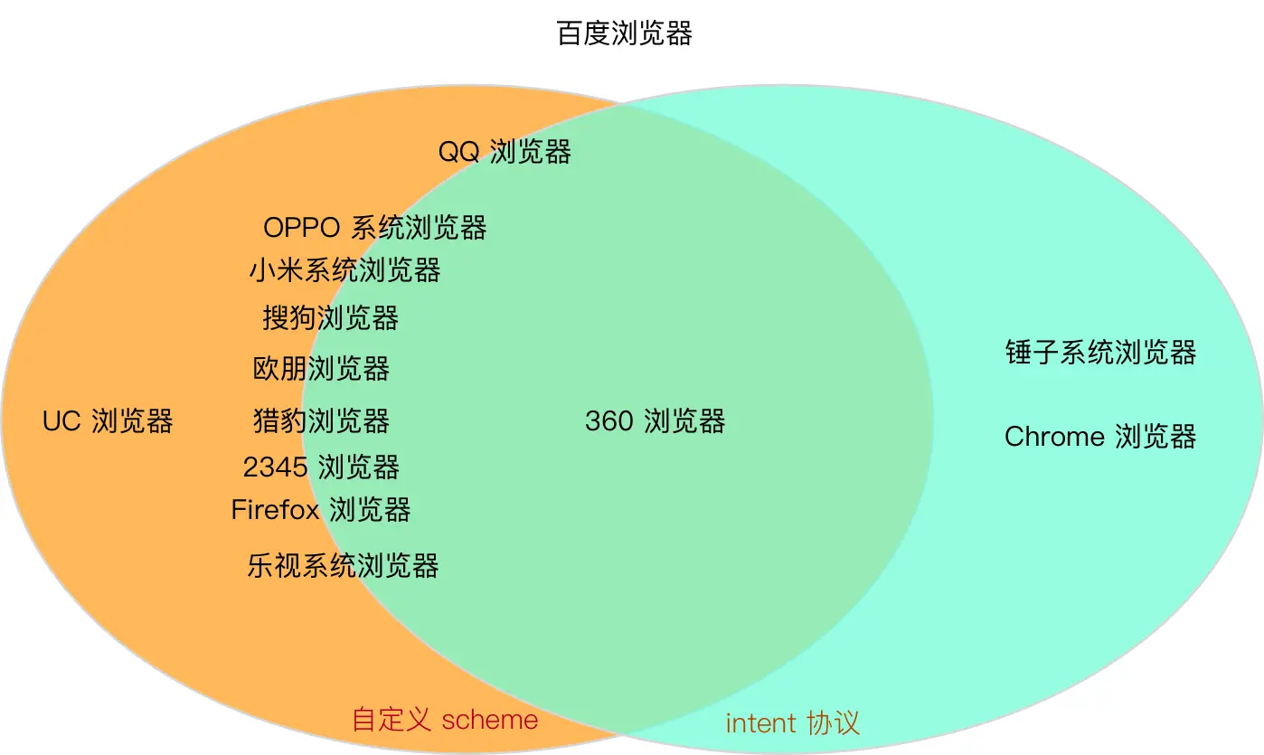 3、大部分浏览器,同时支持 scheme 私有协议和intent:// 协议 自动 唤起。但,都没有按标准的 intent:// 协议来实现(除了 360 浏览器,给 360 点个赞):