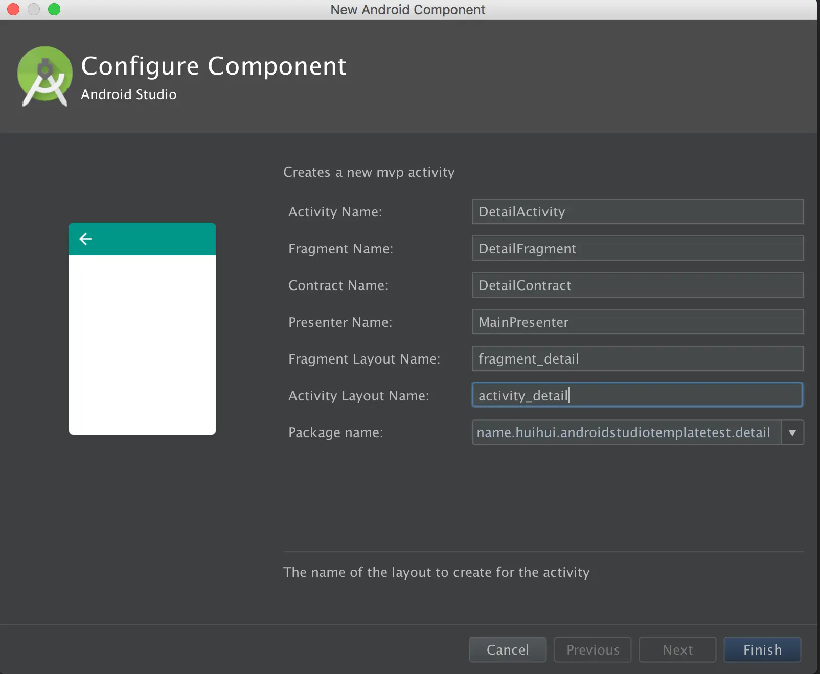 假设现在有一个需求是创建一个 DetailActivity,按照实例工程中 MainActivity 的结构,我们需要创建多个文件,现在我们用 MVPActivity 模板来做这些事。