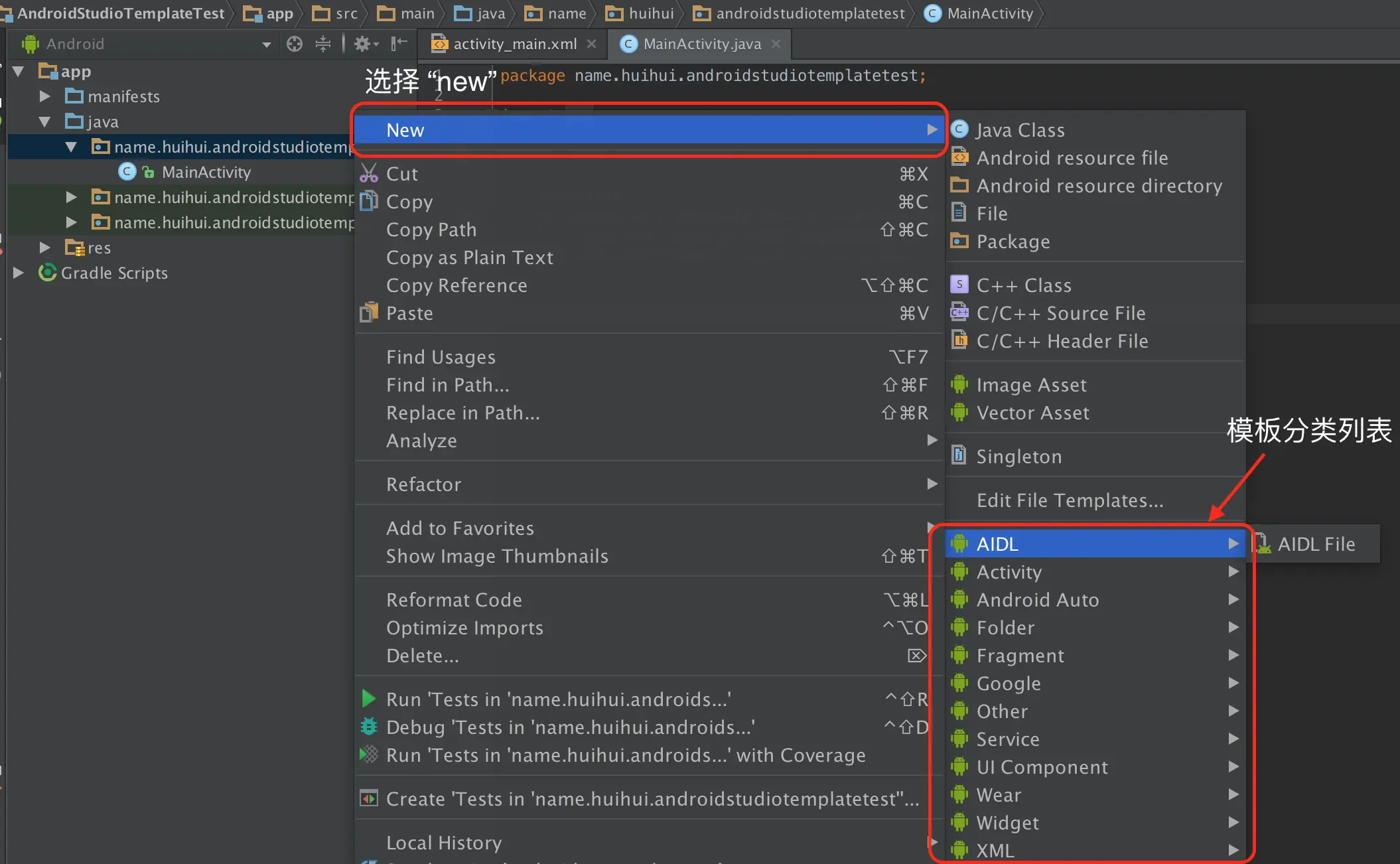 测试项目和测试模板的代码已放到 github 上: AndroidStudioTemplateTest