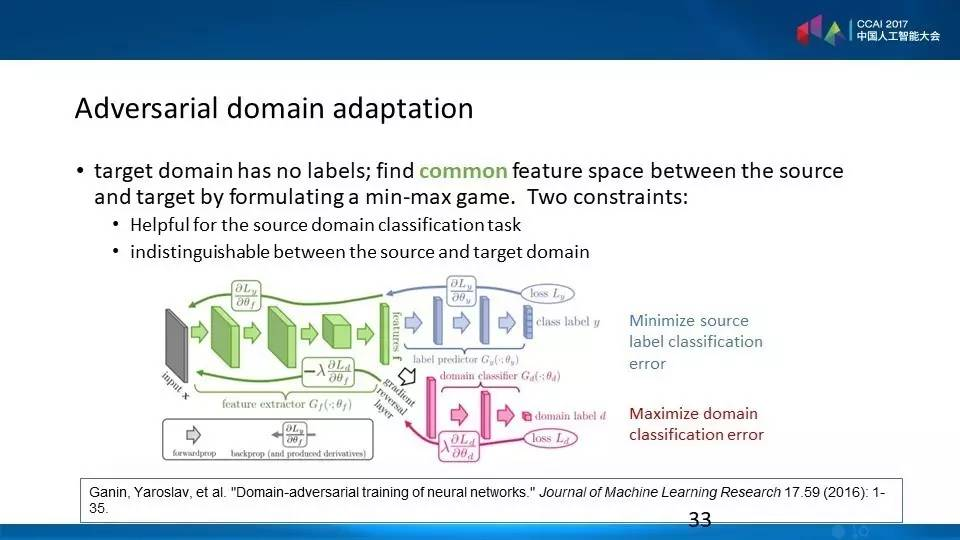 还有一个方法是就用一个Loss描述,这也有所不同,比如说两个领域之间的直接衡量,还有我们同时做两件事,第一件事是说利用两个领域之间的距离,我们要把这个距离尽量减少,同时我们让每个领域自己能够更好地表达它自己。